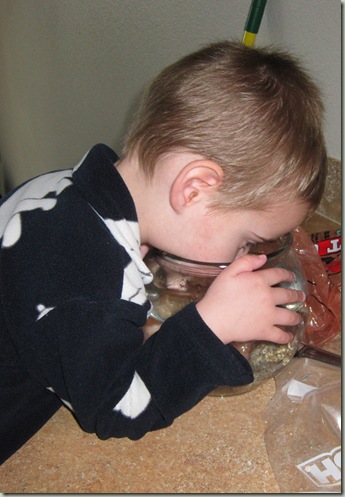 Speaking of Beta...maybe buying a Beta for his next fish would be a way to comfort Joseph when this little 49 cent feeder fish dies. I am sure that Joseph putting chocolate chips into the bowl today will hasten that forgone conclusion. Such a funny story and situation!!!