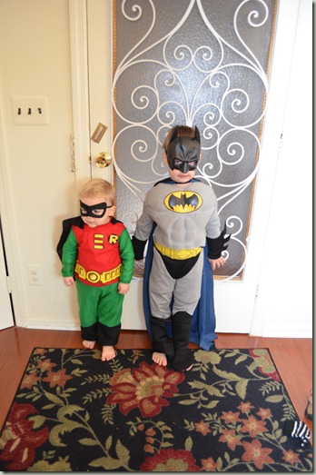 I am SO glad you got that Robin costume for Isaac AND that he kept the mask on for this photo shoot...it is SO fitting that Batmans' little brother should be dressed as Robin and these photos are adorable!!!